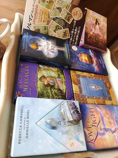 Read more看板も何もなく場所がわかりにくい。広い駐車スペースから坂の細道を少し上がると小洒落た庭園付き住宅が現れる。緑の外壁と白いフェンスのある民家がお店だ。玄関入るとテーブルが1卓、確認できる座席は3席なので入れても最大3人までかな ランチプレートはスープ、前菜、メインプレート、ドリンク、デザートが付いて¥2000。メインプレートのご飯はおかわり自由となっている、ドリンクは珈琲、紅茶、ハーブティ、フレーバー緑茶から選択でき、フレーバー緑茶は更に3種類から選択可能。今回はソレイユ・ルヴァンをチョイス、フランスから見た日本をテーマに日の丸を模したあられ入っている。 店は3日前までの要予約制で、今回オラクルカードリーディングの予約をし忘れましたが、当日依頼しても快諾して頂けました。深堀鑑定でお願いすると様々なカードを用いて人生の悩みのヒントをくれます。リーディングした方にはレイキヒーリングと龍陣祝詞がセットで...