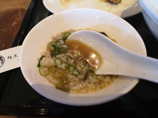 セットメニューの唐揚げとメンチカツ 唐揚げは良いがメンチカツ(ソース) 魚介系ラーメンには邪魔な感じ… 食べ合わせが最悪全く合わない…😡 それからご飯の上に乗った高菜も… 味変用に辛もやし、おろしニンニクが 有りますが必要無し 味付けの濃い物や風味の強い物は 魚介系ラーメンには要らんわ~💢 それとスープが少しぬり~の~ もう少しアツアツで頼むわ~😡💢 ※推奨・・・あご醤油大盛とライス 残ったスープをライスにかける❗ 下品だかこれが一番旨いと思う(((^_^;)