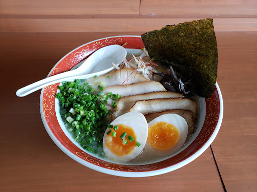 Read moreスープはあっさりがデフォで提供されるのですが、オーダーすればベタ(こってり)に変更できますので、あっさり派にもこってり派にも対応できます。個人的にはこってりの方が美味いと思います。メニューもアレンジ的なバリエーションが豊富で何度リピートしても違う味を楽しめます。ただ営業時間が11時オープンから2~3時間でスープ切れの閉店になるので、早めの来店をオススメします。 特にメニューの中の「六道」ってラーメン800円がオススメです。盛り付けがとても綺麗で思わず写真を撮りたくなります。何かにちょっと似てるかなと思ったら、久留米ラーメン道・麺志のGTOスペシャルに似てる感じですが、六道の方が美味しい感じ。特に豚バラの炙りチャーシューで差が出ています。 替玉の「転生玉」200円は麺以外に具も盛りだくさんで、通常の替玉100円よりもオススメです。 そしてこの店の、他にはない一番の特徴が、怖い心霊DVDが常時テレビ画面に放映されています。個人的にはこれを見るのが楽しいです。 国道沿いなんですが駐車場が3~4台しか停めら...