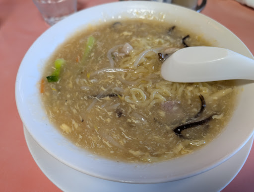 Read moreちゃんぽんと半チャーハンをオーダー。 餡かけのドロチャンポンが有名だが敢えて普通のちゃんぽんを食べて見たがあっさりしてるけどコクもあって最後までスープ飲めて美味かった。 チャーハンはしっとり系のチャーハン。一口目は美味いと思ったが食べ進めていく内に味が濃く塩味で塩っぱく感じ最後まで完食出来なかった 自宅に帰ってから凄く喉が渇く渇く!何杯水を飲んだことか!! あと髪の長いぽっちゃりの女が愛想がない 注文したのを運んで来る時にテーブルに置く時も無言。普通お待たせしましたとか、こちらチャンポンですねとか一言なんか言うやろ!! 食べ終わって会計しょうとレジに客が並んでても(自分が今やってる事を途中でやめず)電話でのテイクアウトの注文の出来上がった商品の包装作業を優先してレジに客が並んで居ること知りながらその客は後回し 普通、作業してる手を止めてお客さんがレジにいる...