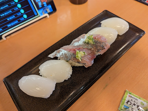 Read moreできた時は熊本系の回転寿し店が近くにと嬉しかったですが、行くたびにひどくなっています。 寿司ネタはほぼ、鮭、鮪、海老、貝のバリエーションで、 まともな白魚青魚はほとんどない状態、 まるで海外の寿司店です。 かろうじてあるものを頼んでみましたが、 鮮度は良いとはとても言えないものばかり、 冷凍の解凍も下手で水っぽかったりボソボソだったりでした。 小海老の唐揚げも解凍も上手く出来ないようで頭は真っ黒、全体的にも揚げすぎて濃い茶色の状態で出てきて困惑しました。
