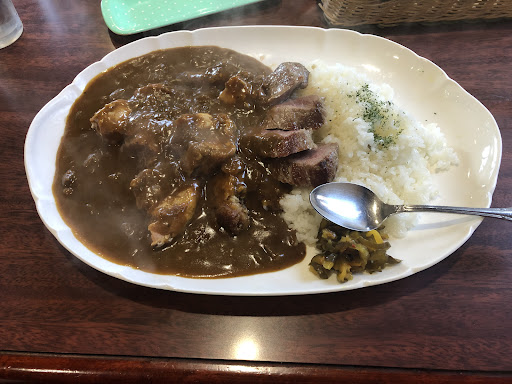 3種のカレー美味しかったです。 厚さ2cm以上にカットされた分厚いローストビーフ、豚肉がホロホロになった煮込み、下味の付いたグリルチキンがゴロゴロ入ってます。 3種とは、肉が3種類ということなのですね。 カレー自体は、想像を絶するくらいコクがあってマイルドな欧風カレーです。 30センチ以上ある大きなお皿にたっぷりと載っているかなりのデカ盛りなのですが、カレーも肉も感動するくらい美味しかったので、気が付いたら完食してました。 肉がふんだんに入ってるので、カレーというよりは肉料理を食べている感覚でした。 前菜にサラダと食後に飲み物(コーヒーか紅茶)が付いてきて、サラダはバルサミコ酢が効いていて、コーヒーもいい香りで美味しかったです。 絶品なので、また食べに来ようと思います。 同伴者の肉...