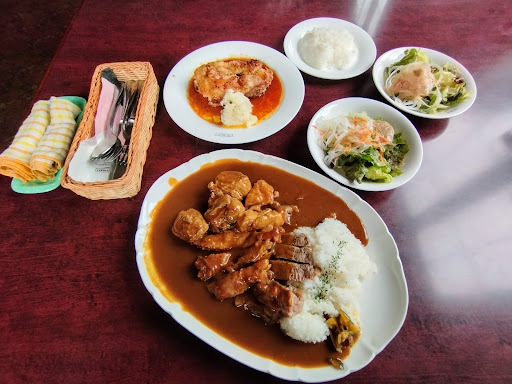 Read more老舗店のランチ。気になっていて、今回初めて行きました。平日というのに、店内は賑わっていました。人気店の活気です。メニューは沢山ありましたが、『本日のサービスランチ』1000円!しかも税込!のチキンソテーを注文!運ばれた時に『今日の鶏肉は大きいから、無理せずに食べきれなくても大丈夫からね』と。確かに、ご飯のお皿位のsize大きく、肉厚でジューシー✨️完食!!美味かったです☺サラダとご飯と飲み物付いて、大満足でした。今度は、家族や友人誘って行きたいです。忙しそうでしたが、心遣...