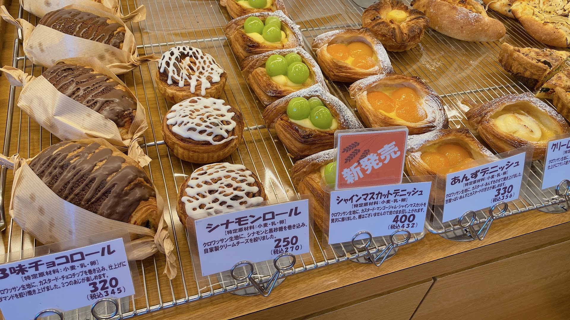 あまり見たことのないパンが多く、中には、社員マスカットが乗ったデニッシュまであるではないですか!