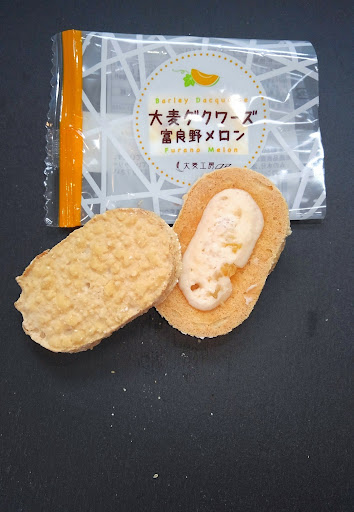 フランス焼き菓子の『ダックワーズ』に似ていて 薄力粉やアーモンドプードル(粉末にしたもん) を使わず大麦粉で作ってあり 食感は外サクッ中ふわふわで柔らかい口当たり✨