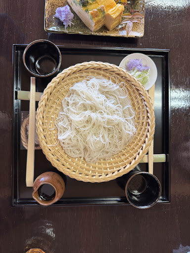 I visited here around 12:30 on January 17, 2025. Please note that you cannot order unless you enter the restaurant by 1:00! It is located at the top of the torii gate of Orihime Shrine, so you will be out of breath. So it is easier to go to the top by car. I ordered Sarashina Nama Ippon, Duck Soup Soba, and Juwari Soba. I ate it with salt and it was very delicious. I think the Sarashina is particularly distinctive, so you should definitely try it when you go. The soba is very delicate. My personal favorite was the duck soup! The fragrant and rich soup was so delicious that I added buckwheat soup and drank it all...