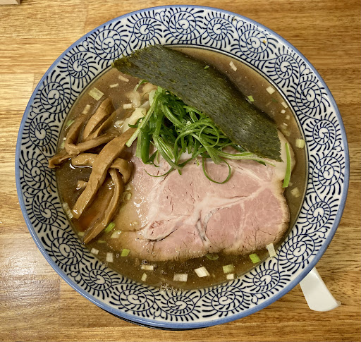 Read moreお店の看板に「本格手打ち麺!」と書かれています。 お店が出来てすぐの頃の2015年に一度食べて、厚めで大きめのチャーシューが印象的だったものの、スープは深みのない単調な節系メイン、手打ちと言う麺はまるで機械製麺そのもののような無機質なストレート細麺で、かなり自己流であまり美味しくないなぁと言う印象でした。特に、手打ちの魅力を全く感じられない麺が駄目で、わざわざ低加水ストレートの機械麺に似せたような麺にしているのが不思議でなりませんでした。それから3年が過ぎて、ネットで見たらいつからか麺がピロピロの縮れ麺に変わっていたので興味を持ち、またこの3年間でスープも多少進歩したかもと思い、再訪してみました。 塩ラーメンと餃子を戴きました。 最初に出された餃子は「ホワイト餃子」と良く似た作りで、皮が厚くてこわばって硬く、まるでフランスパンの表皮のような粘りの強い美味しくない皮でした。強力粉でしょうか?中は半分ほどぽっかり空洞が大きく空いていて、餡は半分程しか入っていませんでした。さらに餡の香りも味も弱すぎました。もともとホワイト餃子が大の苦手ですので、こちらの餃子も残念ながらまったく美味しいとは思えませんでした。果たして、こういうモゴモゴした硬い厚皮で中身がスカスカな餃子を好む人は、一体どこをどう高評価しているのでしょうか?大きさも小さく、これが3個で250円ですから、1個が83円もする訳で・・・注文した事をかなり強く後悔しました。 塩ラーメンは、スープは3年前とほとんど一緒で、コクの弱い節系メインの単調なスープであり、残念ながら何の進歩も改良も感じ取れませんでした。むしろ、パンチを出そうとしてなのか以前より「塩」の投入量をかなり増量した印象で、しょっぱくてあまりスープが飲めませんでした。 強い縮れタイプになった麺は、まず茹で方が足りておらず麺が硬すぎました。そのせいでせっかくのピロピロの縮れが躍動せず、茹で足りないせいでカンスイも抜け切れていない印象でした。硬いせいで歯応えだけはありますが、噛んでみても小麦粉の良い香りも旨味も感じられず、何ともガサツな風味で全く美味しくない麺でした。かなり低質な輸入小麦粉を使われているのでしょうか?美味しい麺を作るなら、まず素材としての小麦粉自体の美味しさという物が必要だと思います。麺の量も多くないですし、スープとの相性的にも以前のストレート細麺の方がまだ良かったと思いました。また、3年前も感じたことですが、そもそも手打ちにしては加水率があまりにも低すぎるのが不思議でなりません。一度、こちらの「手打ちの現場」を見てみたいと強く思わせてくれる麺でした。 チャーシューは3年前よりやや小ぶりになっていました。豚のもも肉を長時間調理でホッコリ、ホロホロに仕上げている点は良いのですが、節系スープに浸っていたせいか、味は既に「豚肉」ではなく、まるで「ツナ」のような味になってしまっていました。まぁ、それでもここ数年で雨後の筍のように増えた奇っ怪な「レアチャーシュー」を出して来る勘違いなお店よりは遥かにずっとまともなチャーシューでした。 レアチャーシューなどと言う面妖な物が物珍しさだけで一部で流行っているようですが、ヌルリとしたウエットな口当たりが何とも不快で、グジグジュとした半生な噛み心地も非常に気持ち悪く、味も香りも抜けていて、食べられない位に不味いと思います。そもそもレアチャーシューを出すラーメン店で美味しいお店は過去に一軒たりともありませんでした。 こちらのお店、ラーメンだけなら650円なのでまあまあなのですが、250円の「あの餃子」が加わって合計900円になってしまいますと、あくまで個人的な感想としては大変恐縮ながら評価はどうしても厳しめになってしまいます。 接客は3年前と変わらずテキパキとして手際もよく、徹底してお客様第一主義を貫くよう...