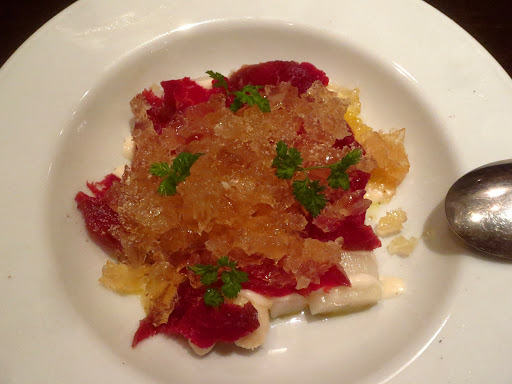 絶対的にお薦めできる足利の超穴場的ビストロです。 夕方から深夜にかけての営業です。駐車場は店舗の前と裏に2~3台ずつしかなく、古めかしい木造の地味な建物であまり目立ちませんが、こと、プロのセンスと高度な技術に裏打ちされた数々の超絶品料理の美味しさにかけては、知る限り北関東で三本の指に入ると確信しています。 一階はドアから左右に別れ、左手はテーブル席、右手はカウンター席中心です。二階席もありますが階段が急なのでお酒を召し上がる時はあまりお薦めできません。店内は広くはなく、木造なので、重厚感はありません。まさに「ビストロ」という気取りのない簡易な造りです。定番の印刷メニュー以外に、その日のお薦め黒板メニューもあります。 お料理の調理はマスターお一人で担当されていて、フロア係の女性が1~2名います。厨房も決して広くなく、お一人でこんなに沢山のメニューをこなせるのかと心配になりますが、注文後は大抵10分程度で、それはそれは見事な美しい盛り付けと、信じがたいほどに本格的で超美味しいお料理が出て来ます。ボリューム面でも決して失望させません。 ソースの素材や味付け、お魚の鮮度や調理法、お肉のカットや火の通し方等を見る限り、相当なセンスと腕前をお持ちであることが判ります。そのへんのド素人さんが開いた「自称・ビストロ店」「似非・フレンチ店」とはまるっきり次元が違う本物の素材と、本物のレシピと、本物のプロの技術の3つが完璧に融合した至高のお料理を提供してくれるビストロです。 しかも、さらに驚くことには、いずれのお料理も単に美味しいと言うだけでなく、きちんとワインが飲みたくなるお味に作られている事が何より凄いと感じます。ですので、ワインのオーダーは絶対に必須です。フランス産ワインが中心で、ボトルで2500~4000円前後、グラスで500~600円前後と「超」の付く最高の良心価格で楽しめます。ですのでご訪問される際は「ドライバー役」または「代行サービス」を確保されてからのご訪問をお勧めします。飲食代以外にチャージと消費税がかかりますが、一人あたり料理3~4品、ワイン3~4杯で、全部でだいたい一人10000円位で済みます。 少しだけ欲を言わせて頂ければ、マスターはカウンターの奥で調理に忙しいうえ、フロアの女性がさほどワインやお料理に詳しくないので、新しく登場した旬の新メニューについて質問したり、お店の方と相談しながら次のワインやお料理を選ぶチャンスがあまりないと言うこと位でしょうか。接客はとても自然体で気取らず、どちらかと言えばあっさりした印象です。 北関東のビストロやフレンチ巡りをされていらっしゃる方は多いと思いますが、あまりにも「騙し」「似非」「虚飾」「素人」「割高」の酷すぎるお店ばかりが多い事に失望し、深くお嘆きの貴兄にこそ、本当にお料理の味が判る貴殿にこそ、万全の自信を持って強くお薦めしたい、まさに数少ない「真のプロ料理と厳選ワインが適価で楽しめる本物...