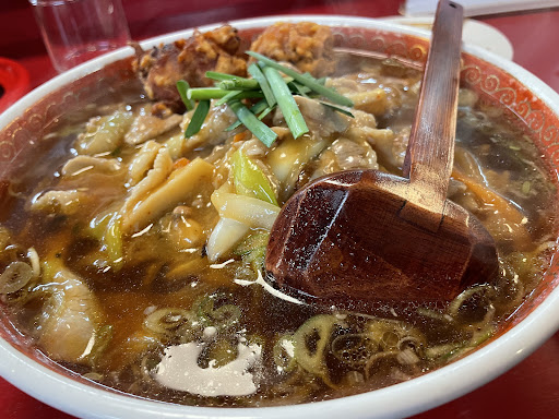 なかでも、巨大なラーメン丼に並々と盛られた、 人気メニューの1つ「スタミナラーメン」は、 12〜13粒程の大蒜粒がゴロゴロと入っており、 他店では、決して味わえぬ、 スタミナ満点な餡かけラーメンをご提供♪ 個人的に、推しの一杯は「鳥唐揚げラーメン」ね♡