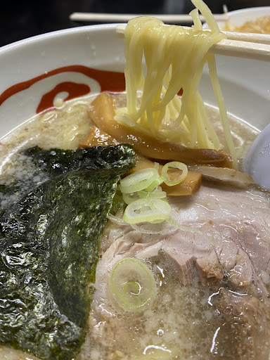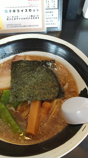 Read more以前利用時、感想書き忘れ。今回久しぶりの再訪問。 昼過ぎ、13時半頃に来店。店内は混雑する程なく直ぐに座れる。 カウンター席とテーブル席。ランチメニューが豊富で日替わりメニューや、日替わりでお得メニューがあり飽きない工夫がされている。 ランチメニュー(970円)で、一の陣(背脂醤油ラーメン)と焼豚丼を注文。 提供時間は遅くない。 ラーメンは、味は悪くないが背脂が少ないのが少し残念。ほうれん草の代わりに絹さやが入っていているが、個人的に絹さやはラーメンに合わない。無理して代替えで入れるなら、入れないで欲しい。 焼豚丼は、炙られたチャーシューがご飯と良く合う。 会計は、机上のカードをレジまで持参するスタイル。言わないとレシートくれ...