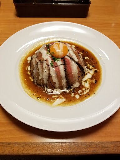 In addition to the steak meals, they have a variety of other beef based meals, including a roast beef don. It's a serving of rice topped with some onions, cuts of roast beef, an egg, and a delicious tare sauce.