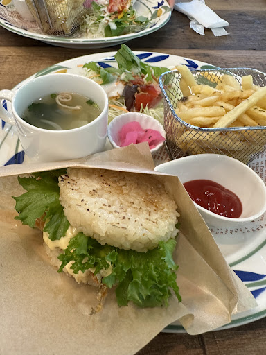 初訪問。 とてもきれいな建物で ドッグランが室内と屋外があっていいなと思いました。 GWに行ったので駐車場も一杯でした。 店内に入ってもうんともすんとも 誰も出てきてくれませんでした。 しばらく待ちましたが何の音沙汰もないので こちらから厨房のスタッフさんたちに声をかけると 席に案内されました。 室内のテーブルは5席位とカウンターの席が3席位?ありました ほとんどのお客さんがドッグランにいる感じでした。 ランチセットデザートつき1210円が ロコモコかとり天とのことで ロコモコにしました。 しばらくしてランチがきたのですが ものすご~く量が少なくて貧相でした。 幼稚園児が食べる位の量でした(笑) サラダなどもほんの一口位で 安い300円位のお弁当についている惣菜よりも少ないチープな内容でした。 デザート付きとのことでしたが ちんまりとした容れ物に 生クリームにちょっぴりチョコを混ぜて色をつけましたみたいな 正直ぱっとしないぬるい全く心踊らないデザートがついていて これで1210円!?と驚愕しました。 飲み物などはついていなくてのこのお値段でした。 ランチセットは個人的にはお得感はゼロでした。