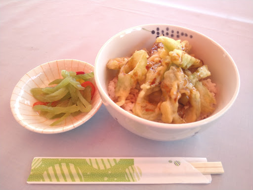 Read more足寄町ふるさとラワンブキまつりに足を運び、当日のメニューにあったラワンブキの天丼を注文。 天ぷらになったラワンブキにタレがかかったシンプルな天丼でしたが、旨い。 サクサクの衣に包まれたラワンブキはしっかりとした歯ごたえと山菜のほのかな苦みが口の中に主張し、山菜の天ぷら好きなら満足の味。タレとの相性もよく、あっという間に平らげてしまいました。 付け合せの漬物も甘酢で味付けてあり口直しにちょうど良い浸かり具合。ここで食べる機会があるならぜひおすすめしたい料理です。