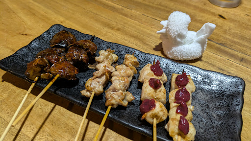 這家真的好吃, 好吃到隔天又來可惜禮拜五預定滿位 進去都有附一盤生高麗菜 等餐時加減吃 他的炸雞炸的剛好薄脆皮 ,肉是用雞腿肉大推 烤串也是讓我感到意外 雞皮是烤到微脆 咬下會有雞油溢出和烤肉醬融合 美味 👍 梅醬雞胸肉烤串 醬太鹹 如果有吃到 醬可以用掉一半試試看。雞腿串也很好吃 烤串很有水準 👍 點了一個火鍋 好像是昆布高湯 我看不懂 底部加大白菜煮一下出水。湯不能喝很鹹 但是大白菜是甘甜的 豆腐是嫩豆腐 碰到就碎開 豬肉和雞腿肉也很讚 用這收尾結束這餐 這間大推 如果吃過牛丼和馬肉燒烤 可以吃點道地小店 吃飯時還有很多日本人來聚餐的店 我是平日禮拜四晚上5.30到那時還沒有客人 隔天禮拜五我們去時已經客滿 可能要預定 很可惜本來還想吃看看其他餐點 兩個人吃了5181 日圓 相當便宜又實在 推薦給喜歡吃雞肉或跟我一樣沒訂餐廳無法吃飯的遊客...
