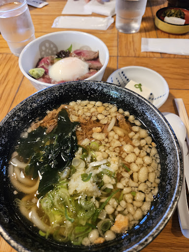 The udon was simple but nice, and my partner really enjoyed the soup. The beef rice bowl was nice, but note that the beef is a bit raw and the egg is pouched style.