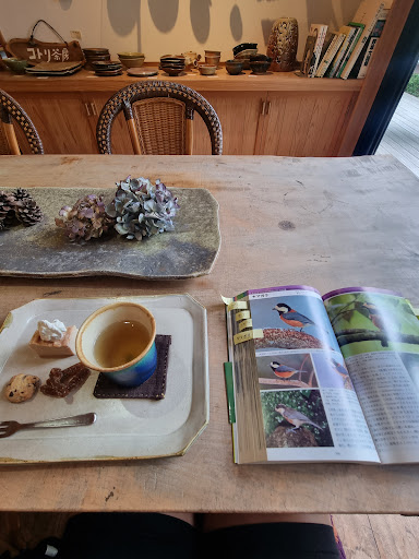 Read more焼き物屋に併設されているカフェ。 座席数少なめだが、店内の棚に飾られた陶芸作品と木目調の内装がとても味がある。 窓の外にあるテーブルには小鳥用の餌場があり、小鳥が餌をついばむ様子を眺めながらティータイムを楽しめる。 メニューはお茶がメイン。普通のお茶もあるが敷地内の野草から淹れた野草茶がおすすめ。なかなか独特な薫りでハマる人にはハマる味。 お茶と一緒に出てきたお菓子もクオリティが高く、穏やかなひと時が過ごせること間違いなし。 入り口がかなりタイトで大きな車で来ると少しつらい。バイクや軽自...