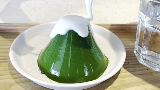 富士布丁 ¥750 抹茶味非常重、不甜,喜歡濃郁抹茶口味的人一定要點富士山布丁!上面會加一點帶有甜味的牛奶(應該是牛奶),跟布丁一起吃會有新的風味跟層次感。