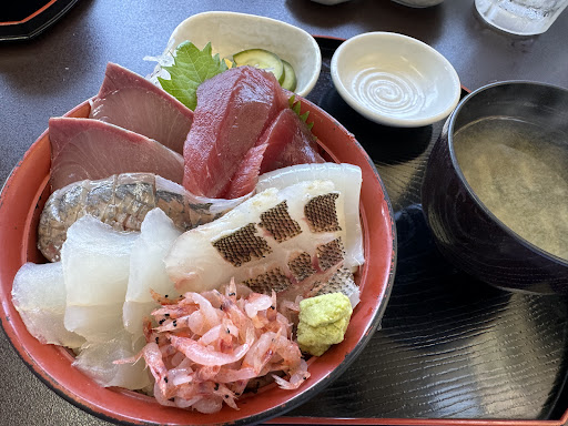 お酒の種類は控えめながら回転はよく、地魚を使った海鮮丼は見た目以上にボリュームたっぷり。白身魚やアジなど、地元で獲れた無骨な魚たちが盛られていて、満足感があります。逆に、マグロやサーモン、イクラといった“いかにも地元産ではなさそうな”ネタは控えめで、そこもまた「...