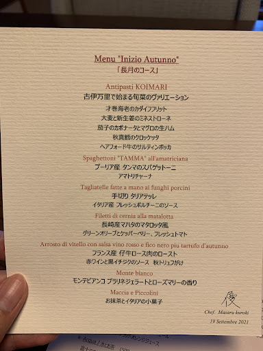 It was an omakase course based menu (you can’t choose the dishes), but it was one of the best meals I have ever had. Excellent fusion of Italian food and Japanese ingredients.
