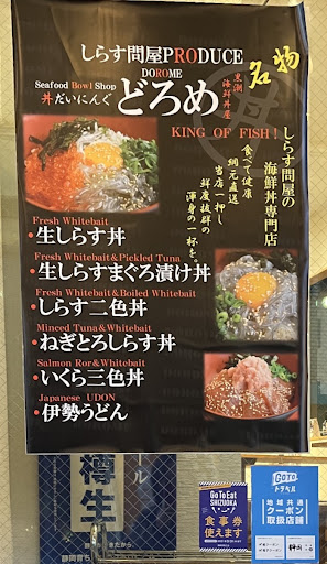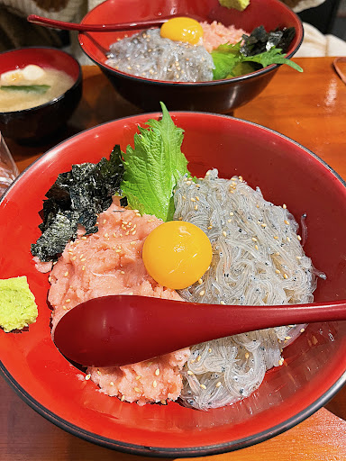 オススメしたい理由は2つです✍🏻 (1)美味しいから!! 写真はねぎとろ生しらす丼です(女性人気NO.1だそうです)。 個人的にしらすが特別好きだと感じたことがなかったのですが、こちらのお店のしらすは本当に美味しかったです、また食べたい……😭 連れはだし醤油が美味しい!と大絶賛でした。