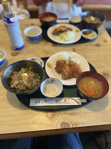 Read more家族旅行でランチ探して訪問。 ご夫婦で経営している定食屋さんです。 常連さんも多く、刺身定食(上)や大島定食をオーダーされてました。 初訪問としてはサービスランチで様子見…。 サービスランチのお刺身も赤なんとか鯛、ホウボウ、カンパチと旬なお魚を頂けます。どれも新鮮でプリプリの歯応えで美味しいです。カンパチは甘さもあり特に美味しかったです。ホウボウも久しぶりでしたが、結構プリプリしていて旨みもあり美味しく頂きました。イカメンチは薩摩揚げにも似てますが、美味しいのでぜひ食べてみてください、個人的には好みのお味です。 たまたま訪問したお店ですが居心地よく、昼食を美味しく頂くことが出来て午後に向けてエネルギーチャージ出来ました。 ご馳走様で...