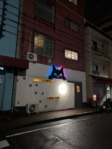 外観から光る猫の大きな看板!すごく可愛くて惹かれました。 運がよければ窓に座る猫ちゃんが外からも見えます。 お店は思ったよりも狭めで、猫ちゃん達が楽しめるキャットタワー?みたいな作りになっていました。