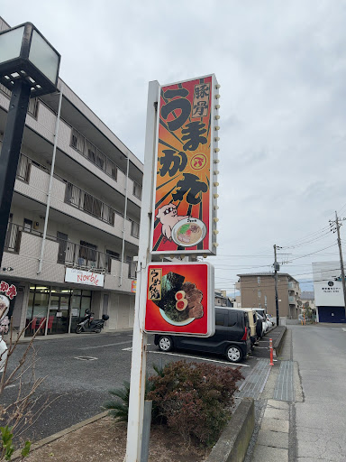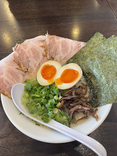 Read more2024.3.24初訪問 いつか来ようと思いつつ数年、仕事途中に近くまで来たのでチャンスと思い突撃しました 日曜日の12時過ぎ到着は混んでて並ぶのかと半ば諦めていたらテーブル席に家族連れのお客さん数名のみでカウンターはお客さん無しです 迷ったらこれと書いてあるうまか丸ラーメン1250円をポチり着席、ホールはお母さんと厨房に男性2名の3オペでした バリカタがおすすめとの書き込みを見たのでバリカタ濃い目でお願いしました 3分ほどで着丼しスープから飲むとけっこうあっさりです 普段はじものヌードルワークスで食べている九州ラーメンですがこちらのスープはヌーワーよりあっさりです 私は濃いスープが好きなのでここまであっさりだとストライクから外れます 具材は大判のチャーシューが2枚と刻みキクラゲ半熟玉子、卓上に高菜ニンニク胡麻紅生姜胡椒があります 瓶に入っているのが醤油なのかカエシなのかは不明です スープが薄いので飲み切ってしまい替え玉は諦めました ヌーワーと値段を比較すると高めに感じます 家族で入りやすい九州ラーメンはこの辺りで無いので高評価なのかと思います 店員さんは感じの良い接客...