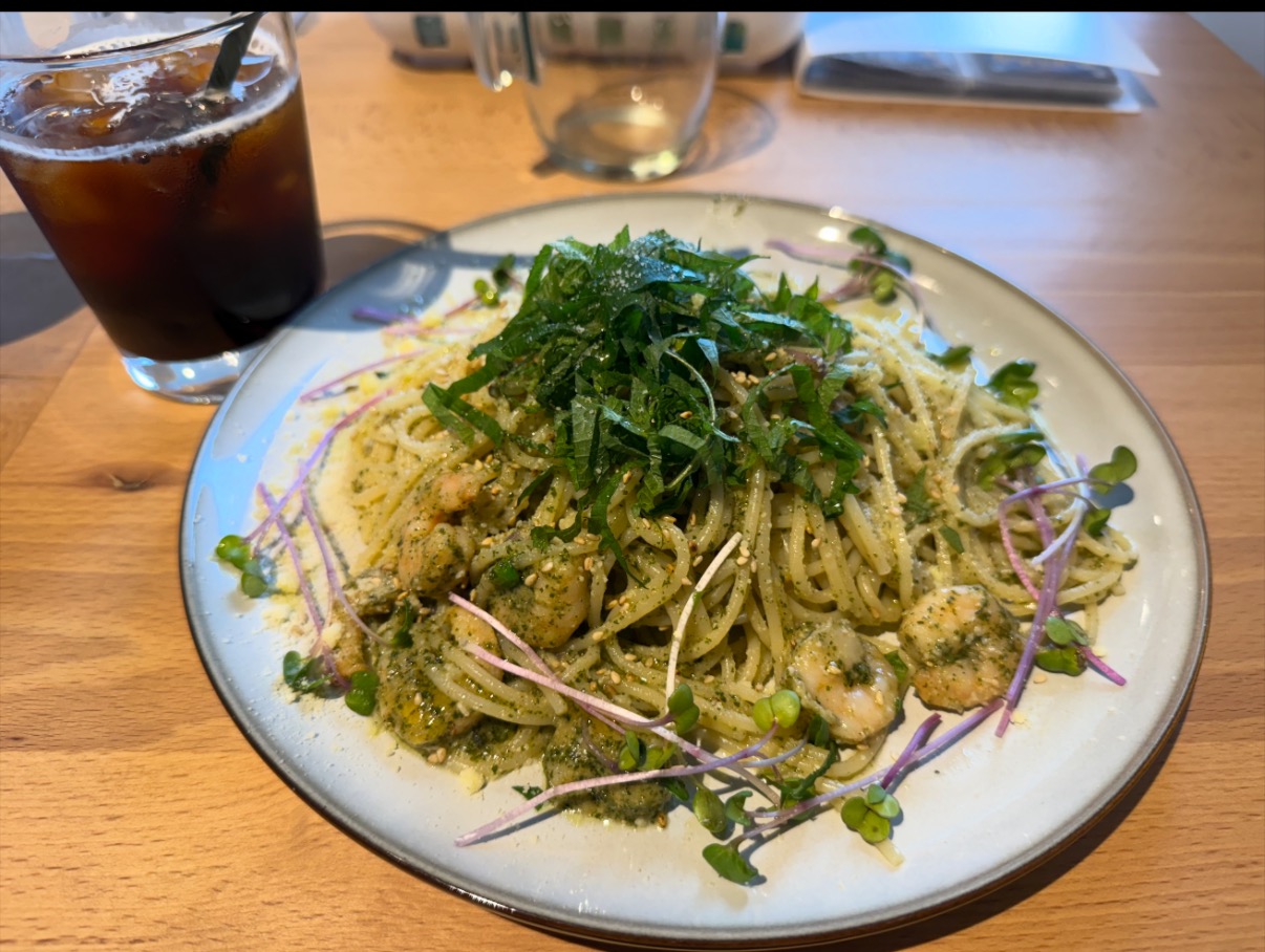 Read more初回からずっと「えびと大葉のジェノベーゼ」一択! 子どもの友達に教えてもらって以来ドハマりして、毎回大盛りにしてます。(次回は特盛かな、笑) スープも毎回、体にじんわり沁みて美味しい。 子どもはお子様プレートに夢中。ドリンク付きなのもうれしいし、おもちゃや塗り絵を貸してくれる気遣いも、さすがでありがたいです。