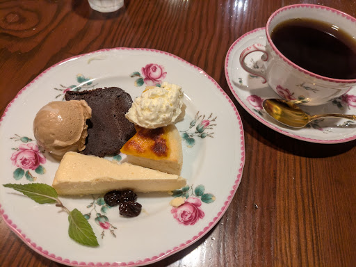 変わらないよい雰囲気。 友人達は迷わずお決まりの『ケーゼクーヘン』と『バターブレンド』。 私は、ケーゼクーヘン、チーズケーキ、ショコラターゲン、全てが少しずつ味わえる『シュムック』と『バターブレンド·アメリカン』 安定の美味しさ。