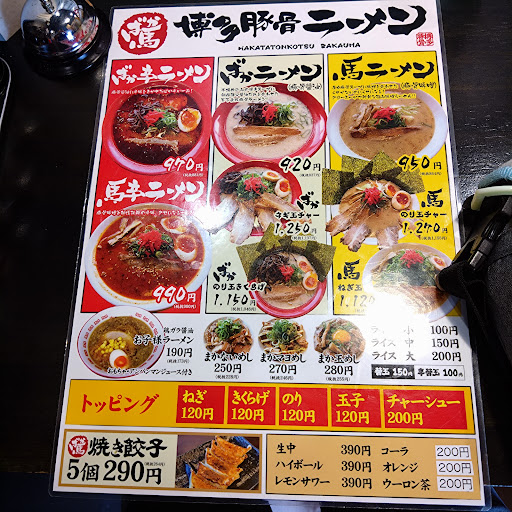 ソコソコ台数停められるし広くて停めやすい駐車場です❗ 11時の時報とともに入口が開いて暖簾がかけられます。 店内入って正面がカウンター、右方面はテーブル席。席数も結構あると思います。 カウンターに座るとお水が置かれます。 カウンターにはアナログの「チンッ」があるので鳴らせば店員さんが来てくれます。 馬鹿ラーメンの普通でお願いしました。まー、ノーマル豚骨ラーメンです。 注文後にセルフコーナーに紅生姜と高菜を取りに行き準備は万端。 5分くらいで着丼でした❗ 見た目は博多で食べたとんこつラーメンとかわりはなし。スープは、、、関東仕様か❔あっさり目で福岡で食べるラーメンより薄め。変にクセがないから良いのかな❔美味しくいただきました。博多には店に入った瞬間に「クサっ」ってなるお店もあるので、、、 美味しかったです❗ご馳走さまでした❗