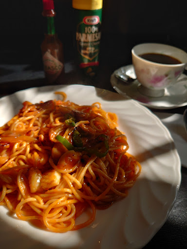 レビュー通りの美味しいナポリタンとコーヒーでした。 コーヒーは昭和の喫茶店では普通だったほんのり酸味のあるサラッとしたタイプ。お砂糖(テーブルにコーヒーシュガー、懐かしい)とミルクをいれるのが前提ですが勿論ブラックでも美味しいです。