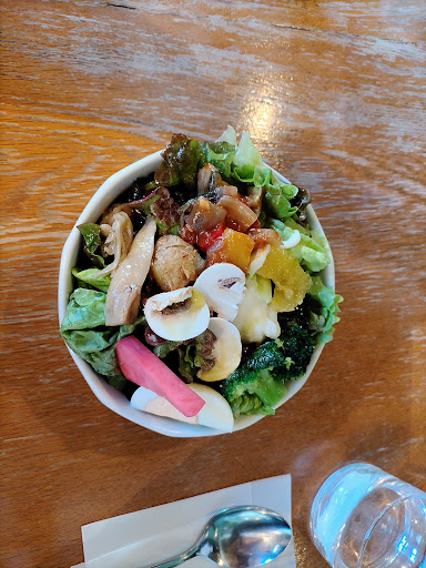 Read more日曜の12:30に予約して行きました。お店に着くと満員でした。予約して正解でした。 電話をした時に席だけの予約は出来ないと言われ、2200円のランチセットになると言われたのでその通りに予約しました。 広いとは言えない店内ですが、上手い具合に席の配置がしてありました。 2200円のランチセットは サラダ、メイン、飲み物、デザート サラダ以外は選択出来るので良かったです。 私はメインはガパオライス、 飲み物はアメリカーノ(珈琲)、 デザートはフレンチトーストパンケーキを選びました。 最初に運ばれて来たサラダに驚きました。セットに付いてくるサラダの量ではなくて盛りだくさんのサラダでした。こんなに美味しいサラダは初めて!と感動ものでした。 ガパオライスはオール玄米にして、辛くないものにしました。私はうちで玄米が中心の食卓なので外食でオール玄米を食べられるのはとても嬉しいです。 デザートは悩みました。沢山のケーキがあってどれも美味しそうなので(笑)開店当時から人気のフレンチトーストパンケーキにしてみました。ホイップクリームがパンケーキが隠れるほどドバっと乗っていて、その上に蜂蜜が贅沢にたっぷり掛けられていました。幸せ!って食べる前から感じました♡ お客さんの年齢層はお子様からご年配の方までいらしてました。 お1人様からグループ(2〜7名)がいらしていました。 広くない店内ですがテーブルの配置のせいか隣のテーブルが気にならずお喋り出来て居心地が良く、 店員さんは忙しいのに親切にメニューの説明をしてくれて、スタッフのアットホー...