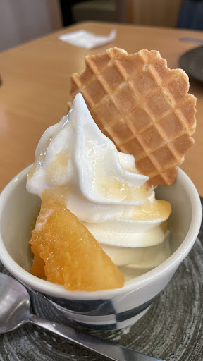 夢庵自慢の「北海道濃厚ソフトクリーム」、評判通りの甘みと、しっとり濃厚な食感で、 メロンとの相性は抜群。 使用されるクインシーメロンの熟度、甘くジューシーな味わい、なめらかな食感、至福の体験でした。