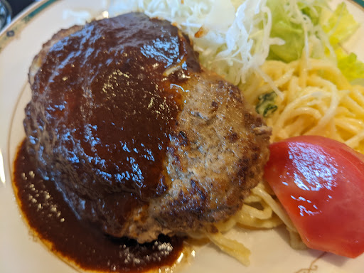 Read more地元なんで前からあるのは知っていた店。 2〜3回行ってはみたけどいつも混雑していたので他に… この日はオープンしてから30分ほどした時間に息子と来店。 混んでるかなぁ?と思ったけどギリギリ並ばずに入店出来た。 すぐ後に何組かのお客がバタバタっと来てすぐ満席に行列、ラッキーだった。 店はレトロな感じのレストランって感じの洋食屋さん。 こういう雰囲気は大好き。 地元の人達に愛されてるって感じのお店なのかな? オープンからすぐ満席になるみたい。 確かに今まで来た時はいつも満席待ち客ありで諦めていた。 待ちが嫌ならオープンより少し早めの来店が間違いないのかな? 駐車場はまぁまぁ台数止められます。 さて、注文はハンバーグランチ250gにエビフライをトッピング、息子はトンカツをトッピング。 混雑していたので少し待って…さぁ来た!いただきます♬ ここはお箸で食べるスタイルみたい。 スープではなくお味噌汁、これもあり。 息子はご飯大盛りにしたけど確かに大盛りだった笑あれは食べ応えありそう。 先ずはハンバーグ。 昔ながらの洋食屋って感じのハンバーグ。 デミは少し甘めの感じかな? なんか懐かしい感じのデミでこれもあり。 ハンバーグはやわらかジュワーって感じのハンバーグではなく、しっかり肉肉しい感じのハンバーグ、これも昔ながらの洋食屋さんって感じのハンバーグであり。 エビフライは… よくある洋食屋さんのトッピングエビフライで、なんか小さめのエビフライや衣で大きさ誤魔化してるようなのあるけど、ここのはプリップリの本物エビフライ、これは美味しい! 息子のカツも厚めのカツで美味しかったようだ。 普段洋食屋でミックスフライとかって食べないんだけど、ここはミックスフライ大アリの予感… 実際、周りのお客さんでミックスフライ頼んでる人まぁまぁいました。 次回はミックスフライ食べてみよう。 と、なかなか美味しい洋食屋さんでした。 コスパはまぁ…普通? でもお腹も気分も満足出来るお店ですよ。 従業...