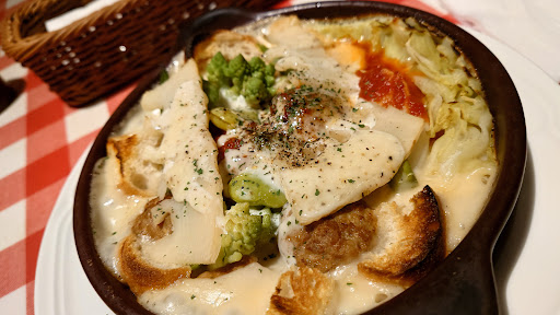The restaurant has a calm and inviting atmosphere, making it perfect for dates or meals with friends. The red and white checkered tablecloths add a warm touch, allowing guests to enjoy a relaxing dining experience.