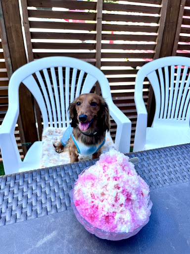 今回食べたのはかき氷 昔ながらのかき氷で300円でした😆 愛犬と少しの休憩なら十分です ホルモンが有名みたいなのでテイクアウトしました。 お弁当もボリュームあって美味しかったです 駐車場は4台ぐらいおける無料駐車場つきです