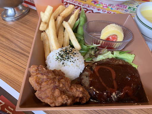 Read moreいつも昼時や夕飯時などは常に混んでいるお店です。私はステーキとドリンクバー、ライスにトッピングでガーリックタレ?。主人は鶏のステーキ?サラダバーのセット、ノンアルコールビールを注文しました。 ナント!ガーリックタレ?はご飯にかけるとの事でした。ステーキには和風のタレが付いてました。「これぞ!ステーキ!」でガーリックタレ?をのせたご飯と一緒にステーキを食べたら美味し過ぎて止まらなくなり店にいるのを忘れてガツガツ食べてしまいそうでした。 鶏のステーキは主人から一口もらいました。表現が貧弱で申し訳ないのですが肉厚過ぎだろ―っ!という焼き鳥のモモの肉の王者という感じで味もしっかりあり満足しました。 私達が行った時は家族連れが多かった気がします。しかも、いきなりバースデーソングが店内に流れてきて「ん?ん?」とキョロキョロしてたら、店員がお子さまのバースデーを集まってお祝いしてました。あちこち3組もお祝いしてました。ドリンクバーやサラダバーは人気で常に人が集まってました。 駐車場は広く車椅子用の駐車場もありました。またスロープもありました。車椅子や杖を使用されている足が不自由なお客様にも負担なく店内まで行けます。 タバコを吸われる方は店の外に灰皿があります。私達が行った時は雨でした。車だったので傘を持っていかず根性で濡れながらタバコを吸いました。 店員さんが素晴らし過ぎて、逆に意地でも欠点を探してやろ~と見てましたが全く無くて惨敗しました。 お米は大釜炊きで美味しかったです。夫婦2人でディナーで5千円でした。是非ともまた行きた...