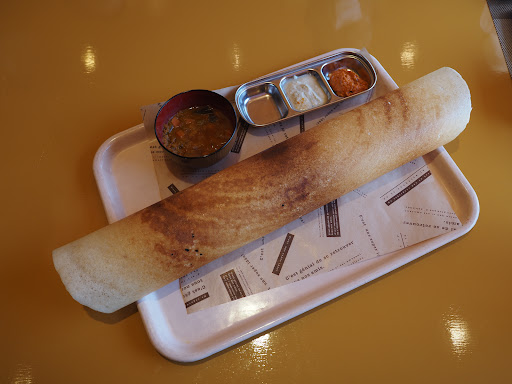で、こちらのドーサは全体的に薄くパリパリに焼いています。 南インドのお食事系クレープだと思って下さい(笑)
