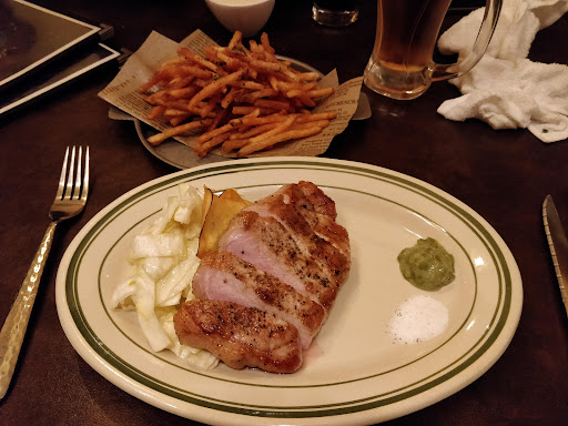 The beer selection is not great, but their wine selection is fantastic. Food was delicious, perfectly cooked meat, and the garlic fries are amazing, but our food arrived at different times which made it a bit uncomfortable for our party. The person that ordered a salad got his first, then everyone got their fries 10 minutes later, then the people who had meat 20 minutes later, and a full half an hour later the last order arrived. Staff was helpful and...