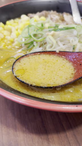 味噌ラーメンはパンチのある濃いめのスープ。 麺はもちもちの中太麺です。 野菜はネギ、コーン、もやしが乗っており、お肉はチャーシューではなく、丸っぽくカットされたものでした。 こういった濃いめの味付けでパンチのあるスープは好みですが、もやしは小さくてシャキシャキ感はそこまでなく…。 お肉も脂っこいだけで美味しいとは思えませんでした。 ボリューム感やスープは全然ありなので、気が向いたらまた食べたくなる1杯かなと思いました。