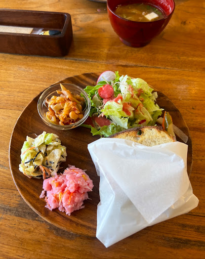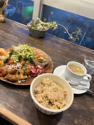 Very nice little café and organic shop with several marked vegan options on the menu. The food was great - fresh and healthy. I paid about ¥1600 for a plate with a main dish, salad, side dishes, rice and soup. The price was reasonable as they used a large quantity of organic veggies. Some places are price gouging desperate vegan tourists with average food (not naming any names but check out my other reviews). This is not one of them. I left nourished but still a bit hungry. I wish the main dish portion had been bigger. With the vegan fried chicken in particular there must have only been 5 small pieces. If you find yourself in the area, pay them a visit. They have an English menu if...