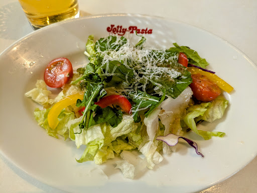 静岡県に住んでから初めてジョリーパスタを知りました! 清水区にあるその店舗は、外には、イタリアの国旗が掲げられて、店内の壁には、華やかな洋皿が飾られて気分も盛り上がりましたが、ここでは、見当たりませんでした! 少しイタリアンさを感じられず残念でした! コロナ感染対策は、しっかり出来ている様でした! 一番手っ取り早い注文は、毎日替わるランチがあり便利なメニューです! 今の時期コロナ感染対策は、気になる問題ですが、入店時に手の消毒液、テーブ等などはしっかり除菌した後次のお客さんを案内している様でした! メニューは、ちゃんと除菌しているのかな? メニューも数冊あるので、テーブルの端に戻すのもちょっと面倒だしスタッフの方の作業は増えると思いますが、出来たらその都度持って来る方法が良いかな? また、サラダバーとかドリンクバーにあるトングやら、お玉と頻繁に触る機会のある器具の近くに消毒用の除菌シートでも有れば良いと思いますが神経質過ぎますか? 少しでも感染リスクを減らし安心して食事が出来る様にして欲しいものです! まー総じて安心して美味しいイタリアンパ...