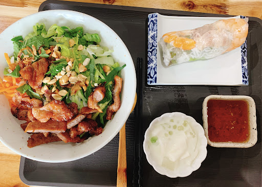 Quán nấu siêu ngon và đúng vị việt ngon nhất trước giờ mình từng ăn ở nhật. Hình đang ăn dở thấy ngon quá mới chụp nên nhìn ko còn dc hấp dẫn như lúc mang ra nữa. Cơm tấm đúng vị, sườn ướp thấm và ko dai. Phở có nạm gầu gân bò viên ăn đúng vị, có vẻ phở tươi chứ không phải phở khô như các quán khác, tuy nhiên nếu nhiều phở hơn tí thì ăn chắc đã hơn, bánh mì thì cắn phát muốn xỉu, đầy đủ pate đồ chua bơ không khác gì ăn 1 ổ ở VN, nước dừa siêu ngọt. Nhất định...