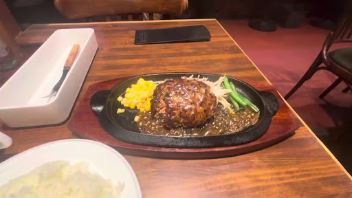Read moreジューシーハンバーグが好き❤️ 金がない頃、、、給料日後に決まって訪問し、たらふく食べたハンバーグとご飯が忘れられない 都内の自他付近では見かけなくなってしまったこちらのお店を厚木出張で発見〜呑んだ後だが迷わず入店! 16時過ぎ、店内には先客2名 感じの良いお姉さんにギリ間に合ったランチメニューのサービスハンバーグをオーダー 厨房では都度ハンバーグをパチパチとコネる音が さて、サービスのスープをいただきながら待つこと10分でオーダー品到着 小ぶりなハンバーグ 850円だしこれでご飯おかわりし放題なんて神すぎるwww こちらのハンバーグはナツメグが控えめなのが良い❣️ ナツメグ味になっている多くのファミレス 安い肉の臭みを消したいんだろうが、、、 ちなみにこのお店の卓上装備のハンバーグソース?はちょっと苦手 さて、ご飯おかわりを視野にハンバーグを小さめにカットしてご飯を大口に叩き込む、、、 これが幸せ❣️ あっという間になくなるご飯はすかさずおかわり! スープを挟みながらモグモグと 20代の頃はご飯3回以上はおかわりしていたが、歳には抗えず2回で断念 しかしながら、ご飯をおかわりして久しぶりに食べたこちらのハンバーグ、、、 幸...