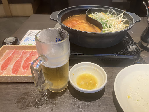 ディナーの宴会コースの豚。これで飲み放題も付いている。 選べる豚肉の種類は少ないが、一応鶏肉と鶏つくねや寿司もオッケーで、夜のコースとしてはお得かな。 配膳用ロボットが居るが1台だけみたい?カラ容器の回収も配膳ロボットの一番下の段だが、一々ケースを引き出さなければならず面倒な上に、入れてる最中に移動しようとするのでちょっと。 しゃぶしゃぶの豚は飽きが来ず、途中鶏肉やつくねもドボドボ入れてしっかり火を通した。それに役立ったのがIHコンロ。かなり火力が強いからなかなかダシが沸騰しないと言う事がないし、野菜とかも一気に入れてもすぐに火が通る。長ネギがトロトロになって美味かった。 ドリンクバーはそんなに種類飲めなかったが、最初に飲んだメロンソーダは薄かった。次のコーラはコカ・コーラやペプシより美味しかったので、ずっとコーラ飲んでた。 そういえば配膳ロボットがドリンクバー等の通路を通るので、飲み物入れて横向いたら目の前にいて危うくぶつかりそうになった。ちょっと移動経路を考えた方がいいと思う。 支払いは優待と現金で払ったが、すかいらーくポイントは現金部分にしかつかないのであまり期待できない上に、すかいらーくアプリに表示される60歳以上のプラチナ割引はしゃぶ葉は対象外なので注意。 3時間コースだったが、意外と2時間は食べ続けられたので満足した。お腹いっぱいで幸せだが、ランチコー...