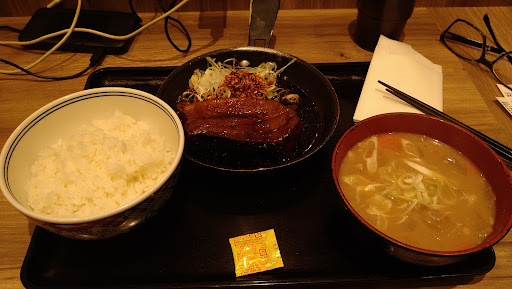Read more朝8時くらいまではワンオペです。先客が5人以上居ると手が回らないため牛丼1杯出てくるのに15分~20分待ちになります。 駐車場に車が4台以上止まっている時は避けた方がいいです。 忙しい朝にこれじゃあなあ……。 昔は出張で良く使っていましたが、1か月前を最後に行かなくなりました。