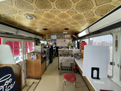 こちらは廃バスを改装したユニークなお店で、外観からして印象的。店内に入ると、バスの面影を残した座席やカウンターが並び、ちょっとした非日常感が楽しめます。昔ながらの空気を感じつつも清潔に保たれており、居心地のよい雰囲気でした。