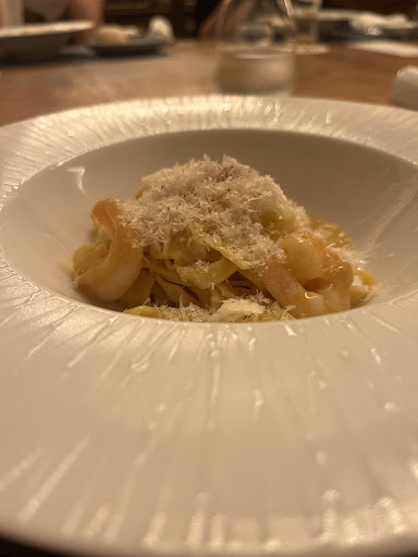 鯵のカルパッチョ、海老とトマトの温製カッペリーニ、そして生ハムとフルーツ(この日はすもも)、ランチで提供されても良いくらいのボリューム。