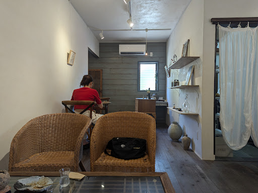 Read more淡路島伊弉諾神宮のすぐ近くにあるカフェ。テーブル席が3卓とカウンター席が数席の小さなお店です。 店内はアンティークな家具や設えで、静かなとってもおしゃれな雰囲気です。なんと言っても、食器が独特で、ドリンク、スイーツ共写真映えします。注文したコーヒーは石でできた恐竜の卵の様な器で提供されました。飲みにくさはあるものの、とても印象に残ります。 自家製プリンは白・グレー・黒の3種類あり、白と黒を注文しました。黒はしっかり硬めで濃厚。白はしっとりなめらかで、カラメルソースを自分で、調整しながら食べます。 プリン600円は高いと感じますが、店内の落ち着いた雰囲気で...