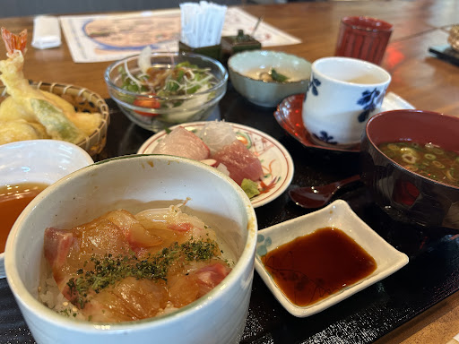 Read more海神人ランチを頂きました。 店内はなんとも言えぬ雰囲気、天井も高く、別世界に来たような。作り込んだ高級感が出ていました。ランチタイムぎりぎりでの入店でしたが、快く対応して頂き、外を眺めていたら外も出てもらって構いませんよと、優しく声もかけて頂きました。 接客はとてもよかったです。 ランチは、値段の割に‥という感じです。 この価格ならもう少し質が高くてもいいのかなぁと思います。 オーダーしてから出てくるまでが早くてびっくりしましたが、、 天ぷらが揚げたてではなかったのがとても残念。 時間がたったものを温めてだしたのがすぐわかりました。この価格でなら、オーダーしてから揚げてサクサクを提供するべきだとは思います。 だから、出てくるのも早いのね…と。 これだけの規模のお店だから、しょうがないとは思いますが...
